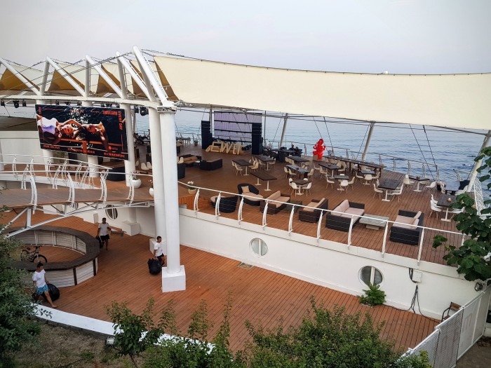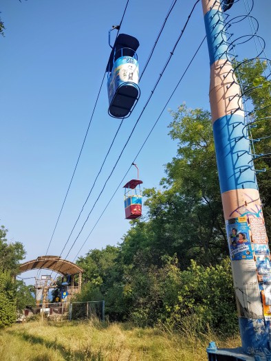 Osvežitev mi v tej vročini res prija, voda pa ni ravno čista. Daleč od tega. Pravzaprav imam občutek, kot da bi v skledo z ostanki solate nalil vodo in zaplaval v njej. Na fotografijah vedno vse izgleda prekrasno, resnico pa vidimo šele od blizu. Spomnim se na bistro vodo Bohinjskega jezera, pa na peščene plaže hrvaških otokov. Lahko smo hvaležni, da imamo vse tako blizu. Posušim se na soncu in se odločim, da preverim stanje še na drugem delu Arcadie. Spet se sprehodim mimo vseh lokalov ob poti. Tako kot plaže, so tudi čez dan vsi polni. Ko glasba in vrvež s plaže ostaneta v daljavi, pridem do predela, ki je kot kaže še v fazi gradnje. Opaž nove škarpe je na pol odstranjen. Ob poti leži orodje, delovne rokavice in celo pozabljen varilni aparat. Ob poti so kupi smeti. Iz objekta, končanega do druge plošče štrlijo zarjavele armaturne palice in vse kaže na to, da se je gradnja predčasno zaključila. Takih prizorov je v Ukrajini na pretek. Voda na tem delu pa čista in popolnoma brez alg. Izkoristim priložnost in še enkrat skočim v Črno morje.