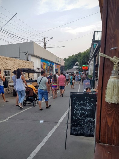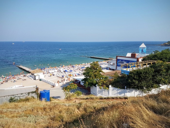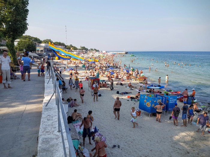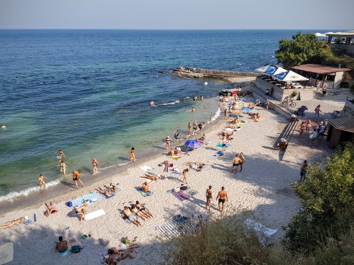 V Odesso sva prispela pozno popoldne. Plaža je od hotela oddaljena le dobrih 5 minut hoje. Razganja me od firbca, končno sva ob morju. Že dolgo se ga nisem tako veselil. Kar nekaj let sem namreč svoj dopust preživljal v gorah. Torbe samo vržem zraven postelje, potem pa hitro pod tuš in na obalo. Spustiva se po dolgih stopnicah in že stojiva na cesti, ki je rezervirana za kolesarje in pešce. Mimo drvijo še mulci na svojih segwayih. Ne vem, če že obstaja slovenski izraz za to, gre pa za tiste samostoječe skiroje. Hodiva proti plaži Arcadia, kjer so na enem kupu številni klubi, bari in kavarne. Z leve odmeva bučna glasba iz enega od številnih zunanjih fitnesov. Za trenutek se ustaviva in preveriva formo lokalnih imetnic oprijetih hlač. Nadaljujeva mimo turških ponudnikov kebaba in se usedeva nasproti v prijetnem lokalu, kjer naju prepričajo lepe fotografije boršča in šašlika. Ko napolniva želodce, v bližnjem klubu preverim glasbeno ponudbo. Utrujena od dolge vožnje se vrneva v hotel in zaspiva kot ubita.