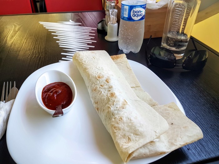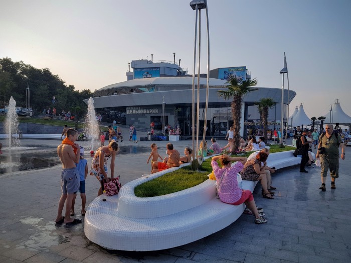 Vračam se po obali in zadiši mi kebab. Sedim na senčni terasi s pogledom na plažo, srkam mrzlo radensko in prav nič mi ne manjka. Še natakar je prijazen in zna angleško. Postreže mi odličen boršč z dvema koščkoma kruha s slanino, kasneje prinese še kebab. Do sitega se najem, zato kar malo še posedim. Plaža je tukaj obrnjena na vzhod, zato klasičnega morskega sončnega zahoda ni, obala pa se obarva zlato-rumeno. Kljub polnemu želodcu se odločim, da se peš vrnem v hotel. Lahko bi sicer izbral enega od vlakcev, ki vozijo nazaj. Pri bazenu z delfini zavijem v hrib proti mestu. Ljudje se vračajo s plaže domov ali proti hotelom, jaz pa zazrt v daljavo puščam za sabo kilometrske ulice. Šele čez čas se ob ropotu od zadaj zavem, da hodim kar po tramvajski progi. Ta je tukaj speljana med cesto in pločnikom, vendar precej neopazna. Odmaknem se v stran in nadaljujem po sivih ulicah.