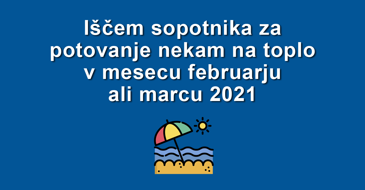 V mesecu februarju ali začetku marca 2021 se nameravam odpraviti nekam na potovanje. Glede na situacijo s Covid-19 ne bom pri destinaciji ravno izbirčen. Šel bom tja kamor je sploh možno iti. Pomembno mi je samo, da grem nekam na toplo.