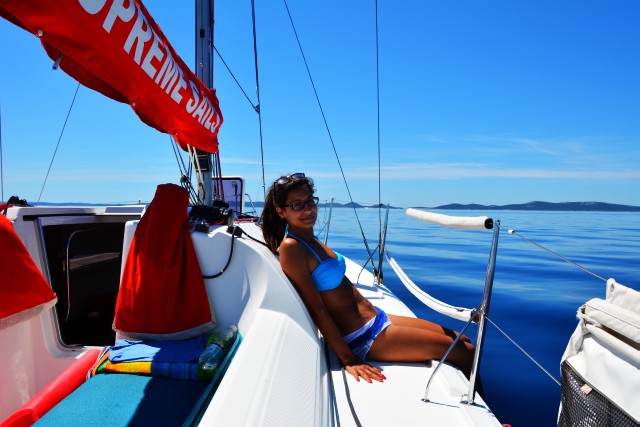 Žal za jadranje ni bilo dovolj vetra, zato smo se peljali na motorni pogon, kar je običajno počasneje kot na jadra. Kljub temu, da je šlo počasi in smo se vmes še ustavili za krajše kopanje, smo na otok Ist pripluli prej kot v štirih urah.