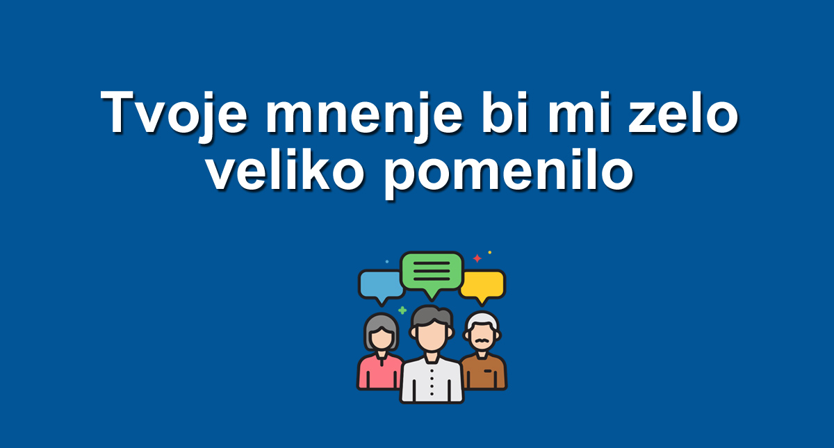 Zelo veliko bi mi pomenilo, če mi poveste svoje mnenje o mojem blogu. Samo tako namreč lahko izvem, kaj je mojim bralcem všeč in kaj ne.